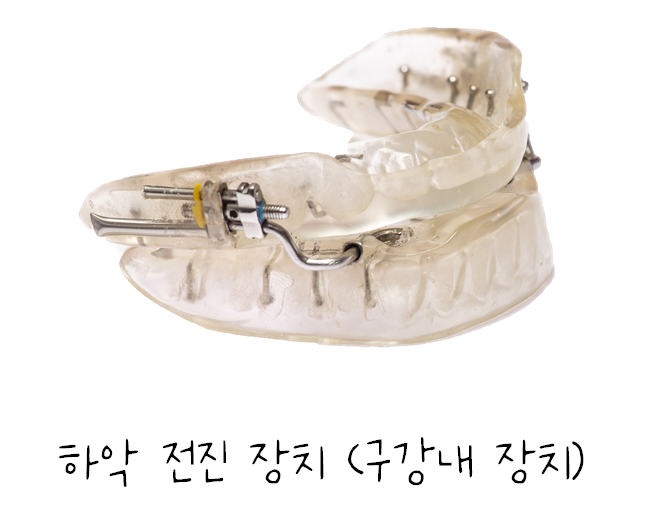 - 특징 : 아래턱을 앞으로 빼서 기도 공간을 넓히고, 잘 때 기도를 막는 혀를 전방으로 내밀도록 하는 장치로 잠잘 때만 착용하는 장치😴