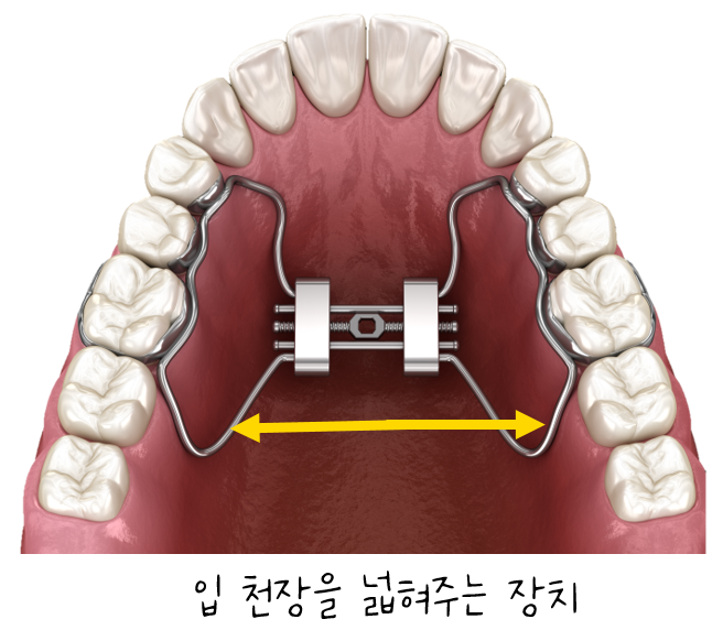 4. 교정치료😬 : 구개부를 넓히는 교정장치를 이용